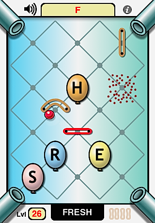 - New twists at every turn, such as balloons that must be avoided, cannons that only fire under certain conditions, rubber bands that break after a single deflection and “backspace” balloons that delete letters