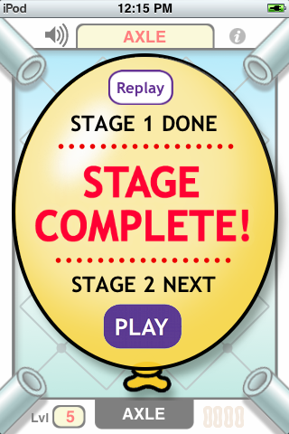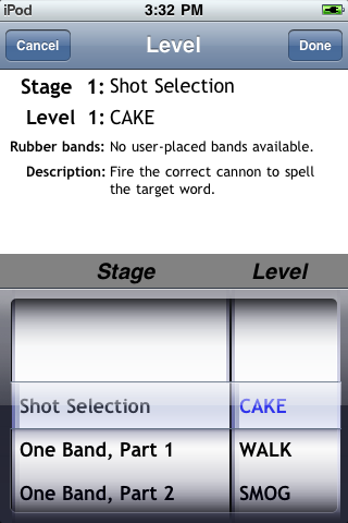 Spellet includes 100 challenging levels that escalate in difficulty from easy to expert. Pop the lettered balloons in the correct order to spell the target word using a ricocheting pellet fired from one of the four corner cannons. Later levels feature longer words, rubber bands to redirect the pellet and lettered bells that must be hit multiple times.