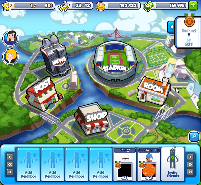 - Simple UI – Use the World Map to access the News, Post Office, Shop, My Room, and Stadium areas