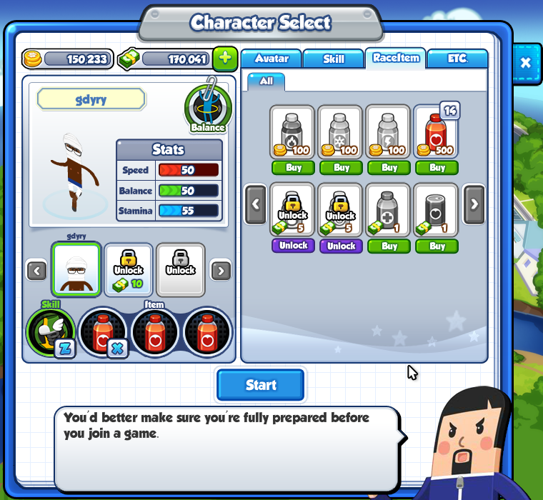 - Customizable Avatars – Use Running Coins or purchased Cash to upgrade and buy an avatar, purchase new skills, and obtain new items