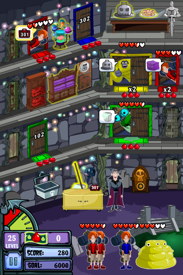 In the game, an all-new version of the global mobile hit game, Hotel Dash®, players help Dracula create and manage a lavish “5-stake” resort exclusively for monsters. (No humans allowed!) Guests include the charming characters from the movie, including Murray the Mummy, who adores the hotel’s signature Worm Cakes; Frankenstein, who has a tendency to sleepwalk; and Wayne the werewolf, who travels with an entourage of pups. Players are sure to have a frightfully fun time helping Dracula book rooms, deliver room service, and attend to guests’ needs, while preparing a special 118th birthday surprise for his vampire daughter, Mavis. Dracula is in for a surprise when human Jonathan stumbles into the hotel – the first human ever to discover the monsters-only retreat!