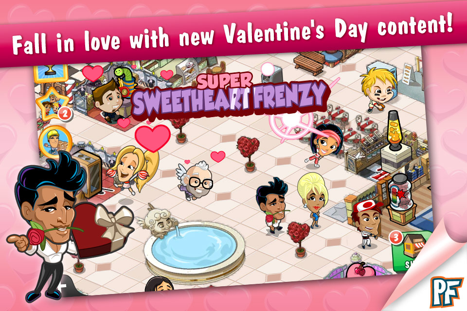 The Mall Stars Valentine’s update offers its own bundle of fresh content, including all-new Mall Star Casey Nova, a hunky heartthrob sure to make your visitors swoon. On top of that, intrepid mall-goers can earn some extra hearts—literally—in a Cupid-themed mini-game, along with extra, coins, supplies, and XP. Finally, players will feel the love in the air with some romantic and beautiful new attractions.