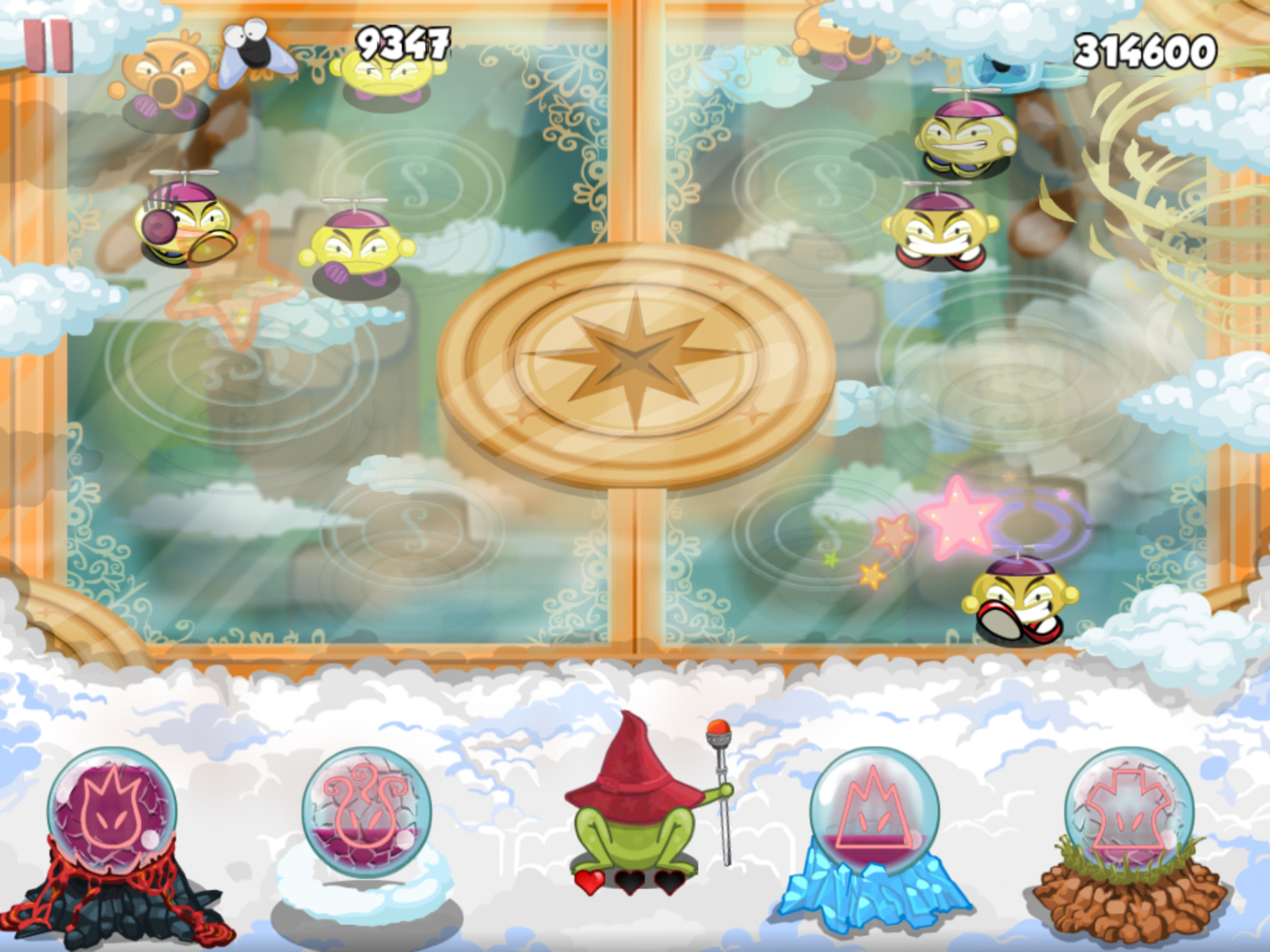Benglings are threatening Bufo the wizard apprentice’s supply of flies, and it’s up to the player to blast them away! Use Bufo’s powerful elemental orbs like Fire, Ice, Wind, and Earth, to cast spells against waves of enemies. Each baddie has elemental weaknesses, introducing light strategy into the fast-tapping action. As they progress, players unlock orb upgrades to gain the upper hand. A perfectly timed magic blast also causes chain reactions among nearby baddies and deals maximum damage. Magic, however, is not unlimited. Each offensive or defensive spell consumes part of the orb’s magic, which is also drained when enemies make it past your defenses and crash into them. Taking advantage of elemental weaknesses, creating combos and mastering the magic spells will lead Bufo to victory!