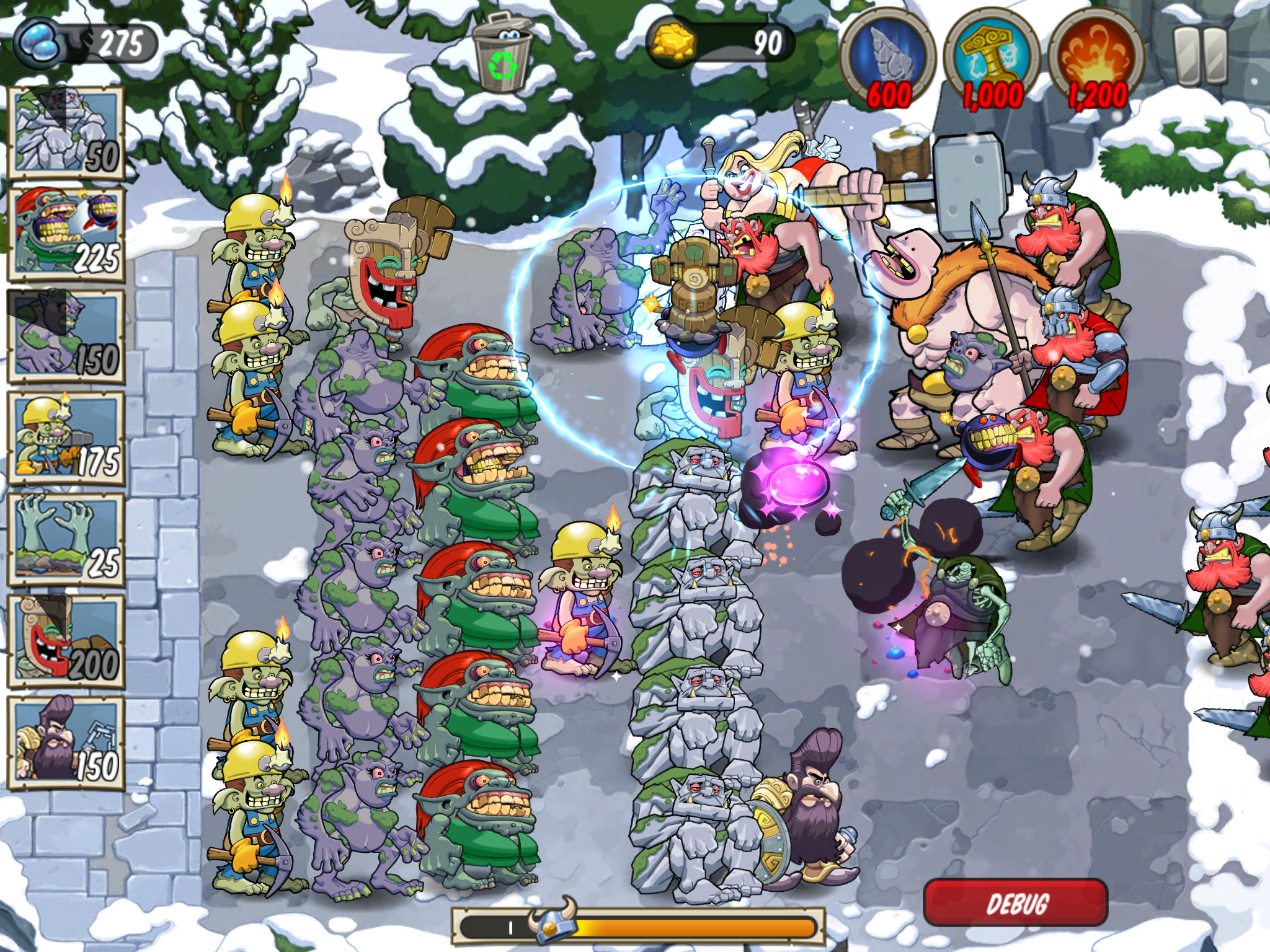 Trolls vs. Vikings is for both casual and hardcore players alike with difficulty modes ranging from Normal to a divinely-crushing Hard. As the gamers progress into the Hard levels, all new tactics and challenges are presented for each round, effectively opening up an entirely new gameplay approach! The game boasts 30+ hours of gameplay with even more content to come in future updates, including multiplayer!